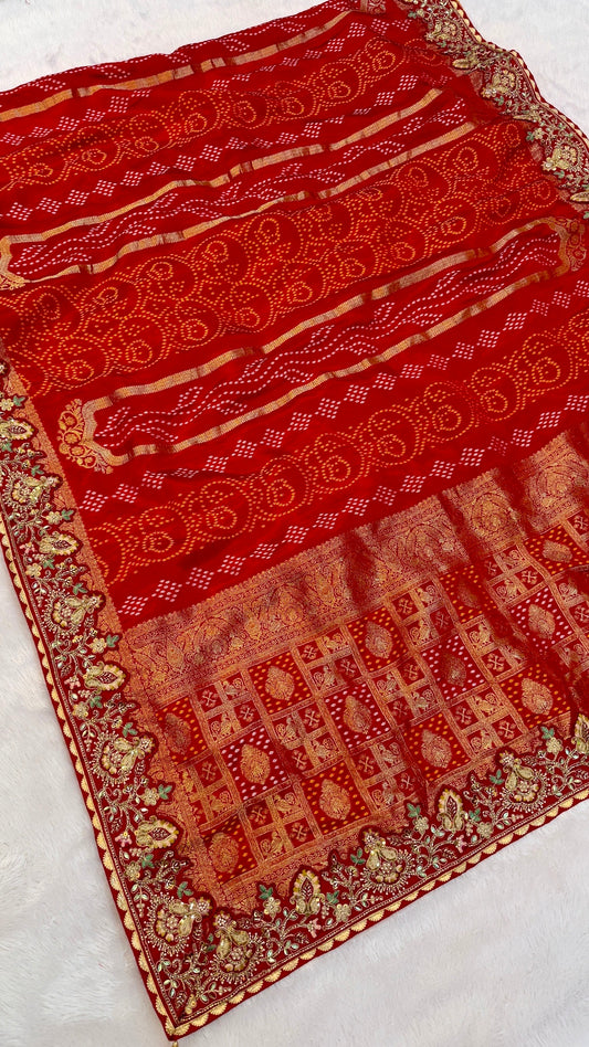 Kasumbo Bandhani Saree with Mirror Work