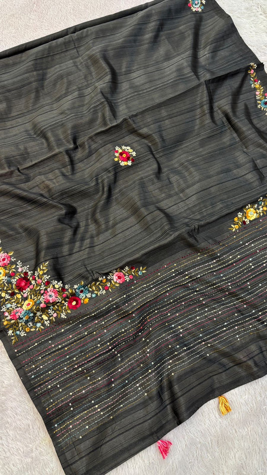 Hand Boutique French Knot Unn Work Saree (Vol.10)