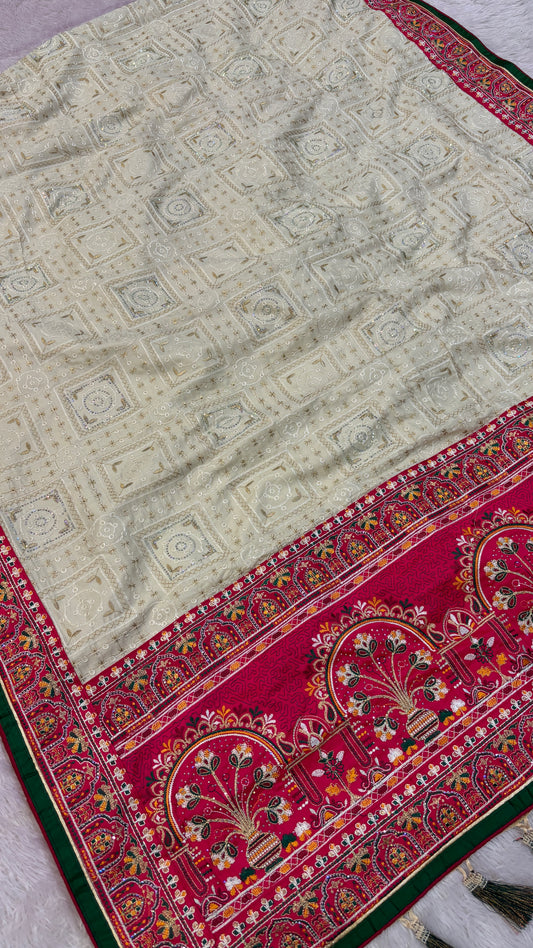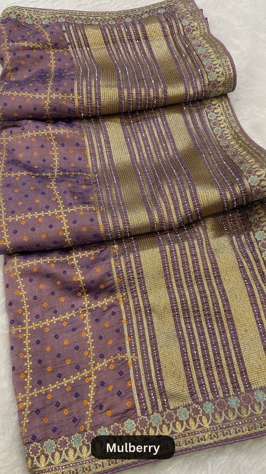 Heritage Kutchi Bandhani Saree With Siroski Work