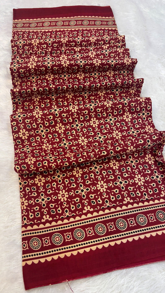 Vintage Ajrakh Bandhej Saree (Rayon Silk)