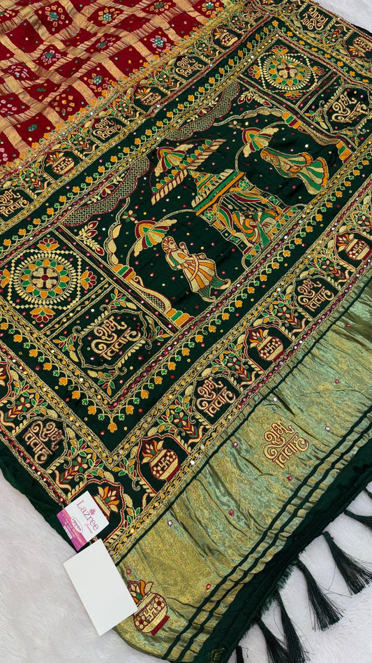 Pure Model Gaji Silk Gottapatti Work Gharchola Saree (Rani)