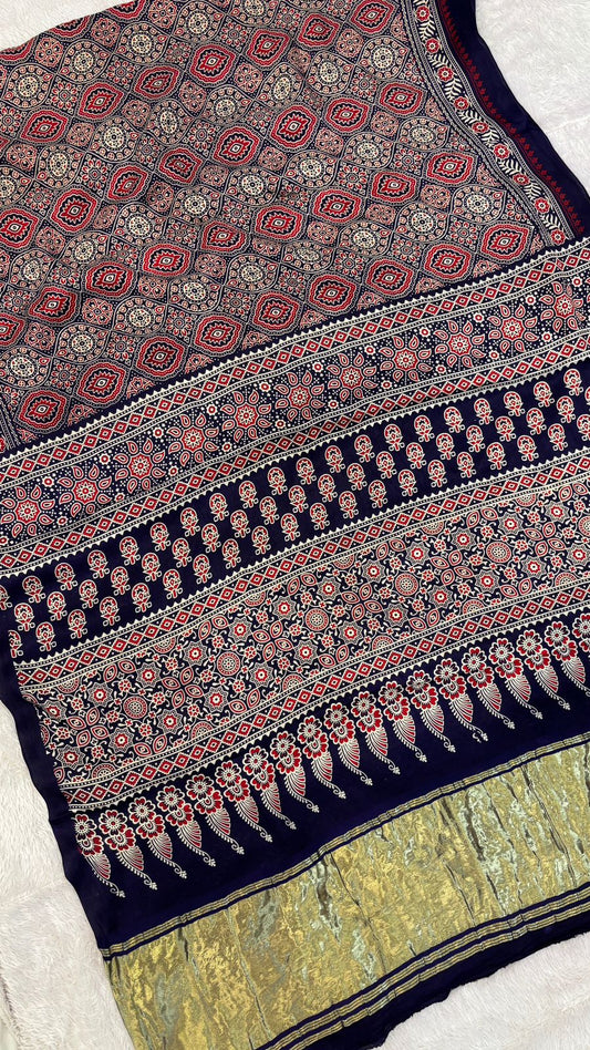 Pure Modal Silk Ajrakh Saree with Lagadi Patta