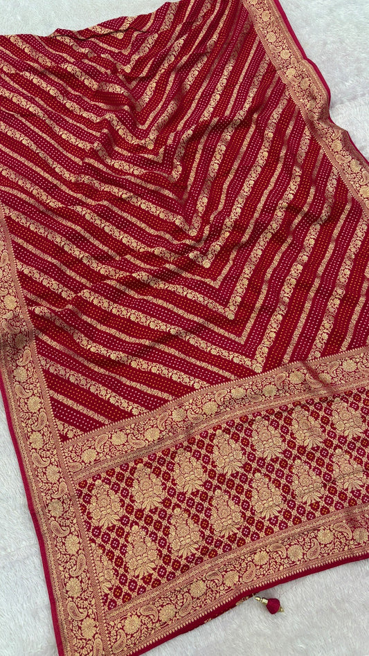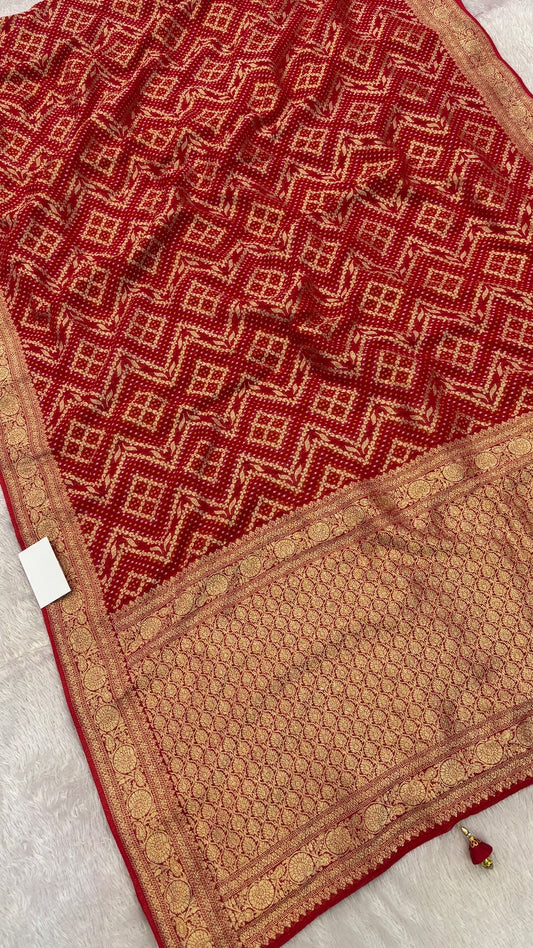 Traditional Khadi Georgette Banarasi Bandhej Saree (Red/Rani) 1