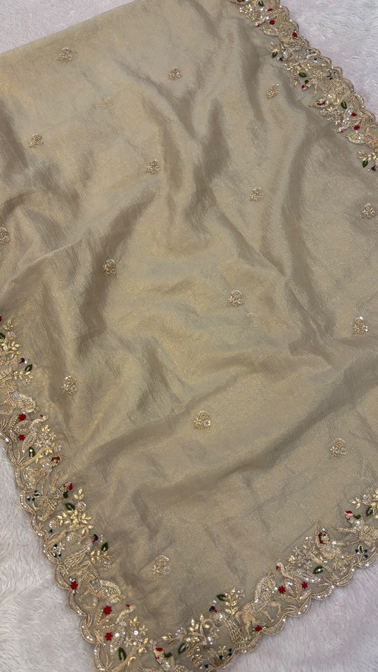 Rajwadi Pashmina Silk Saree Handwork Saree