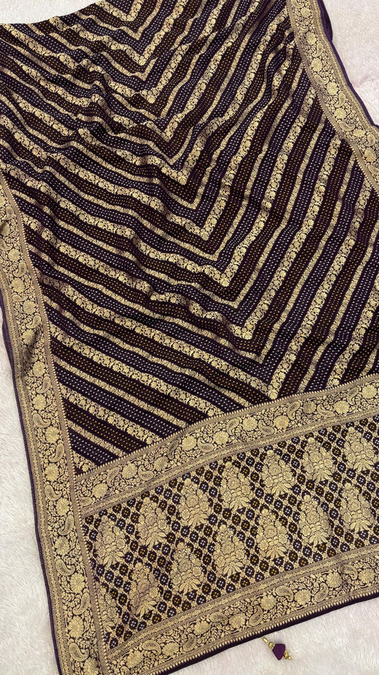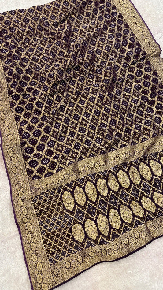 Traditional Khadi Georgette Banarasi Bandhej Saree (Wine) 3