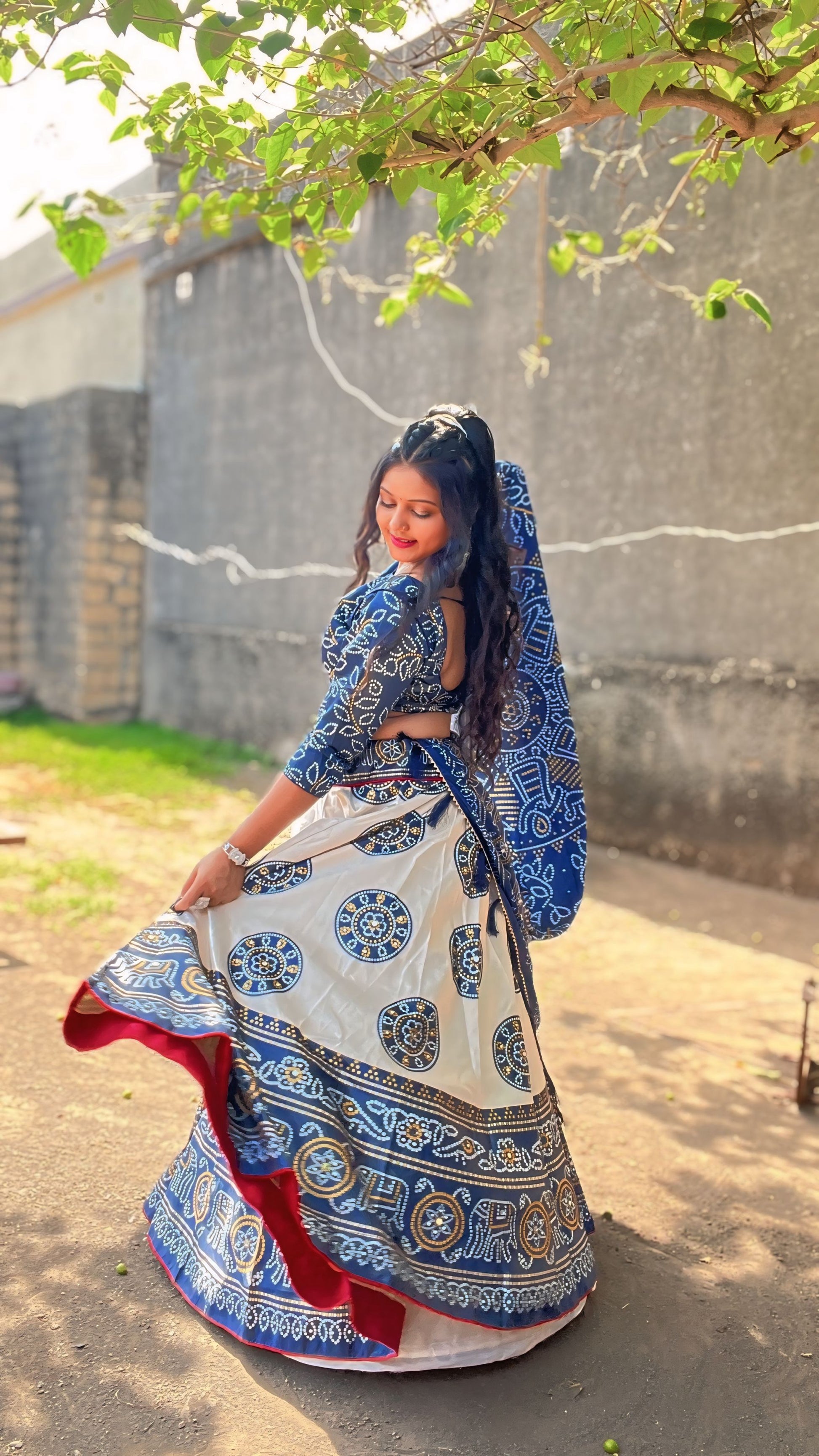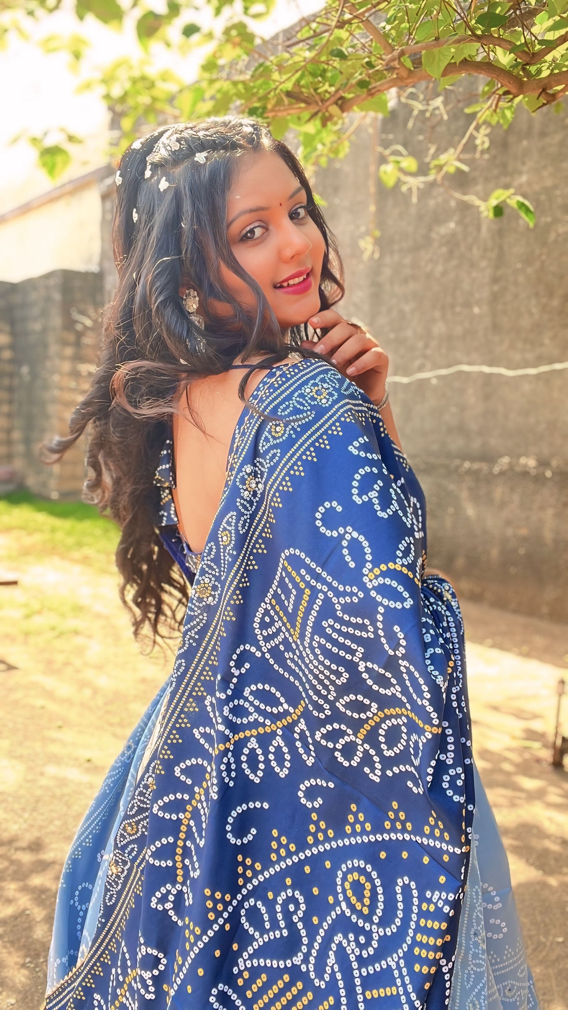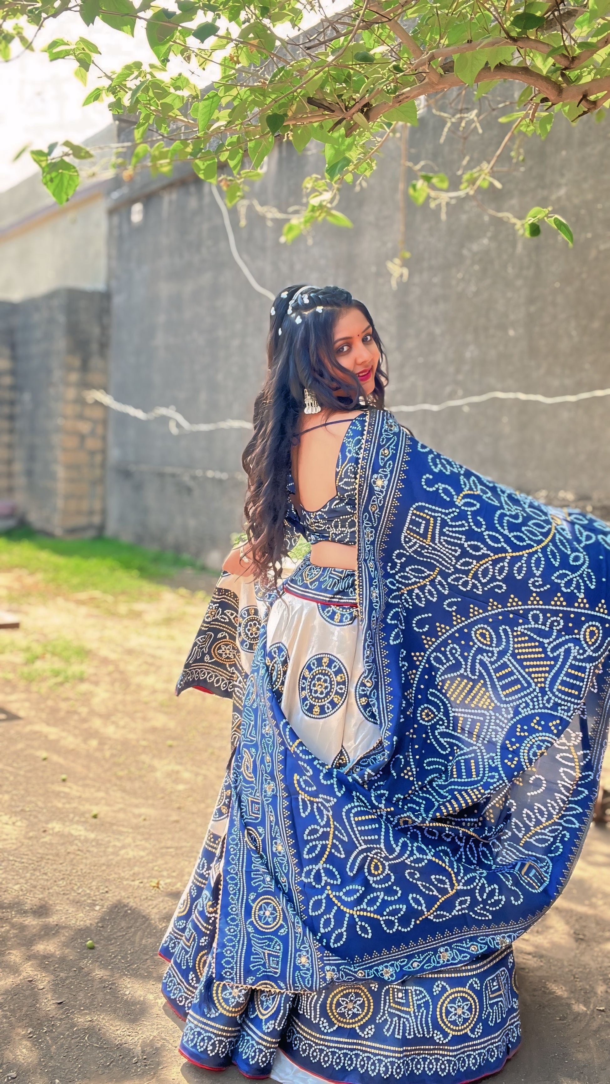 7 Mt. Flair Bandhej Lehanga Choli with Mirror Work (Blue)