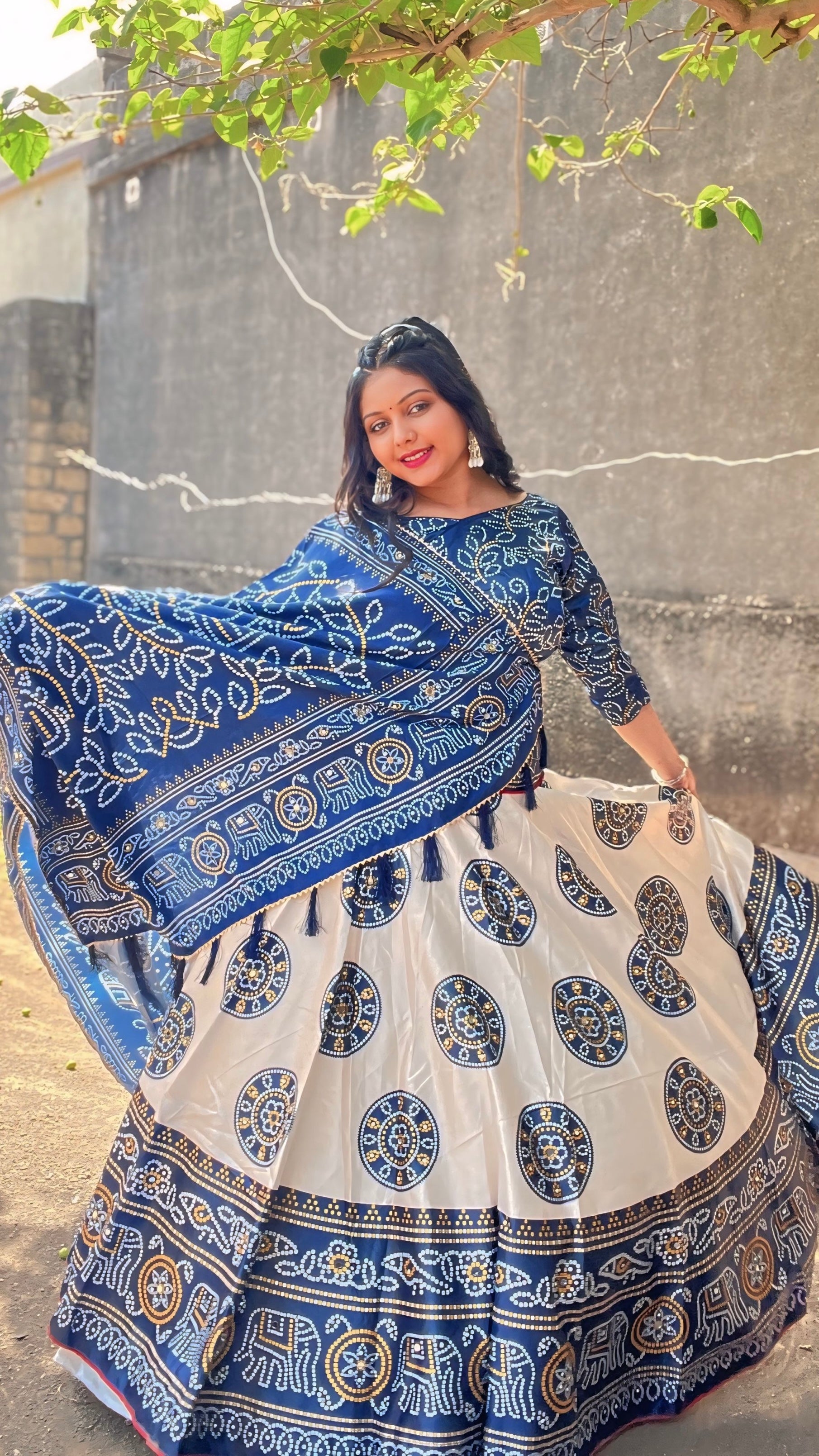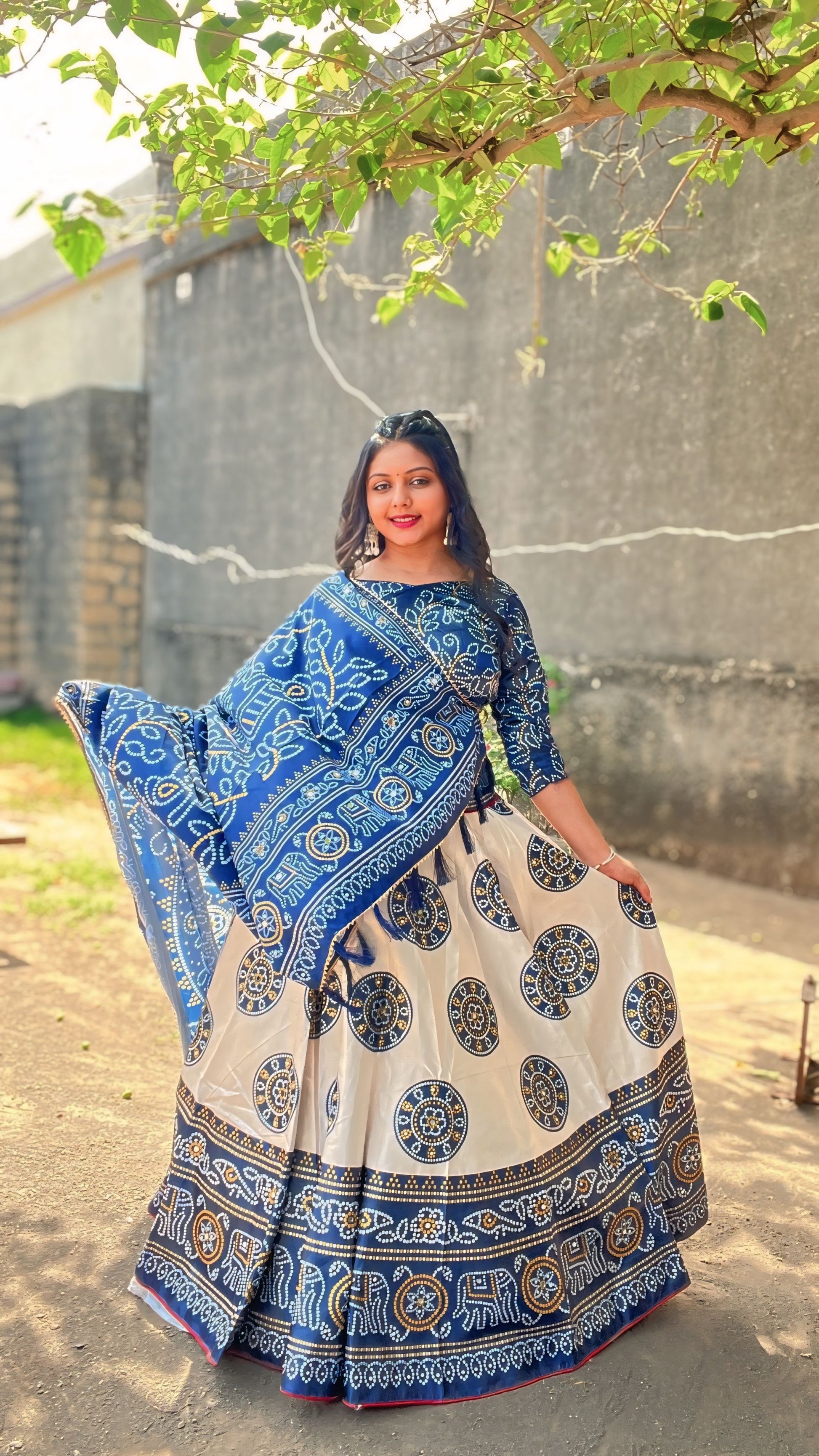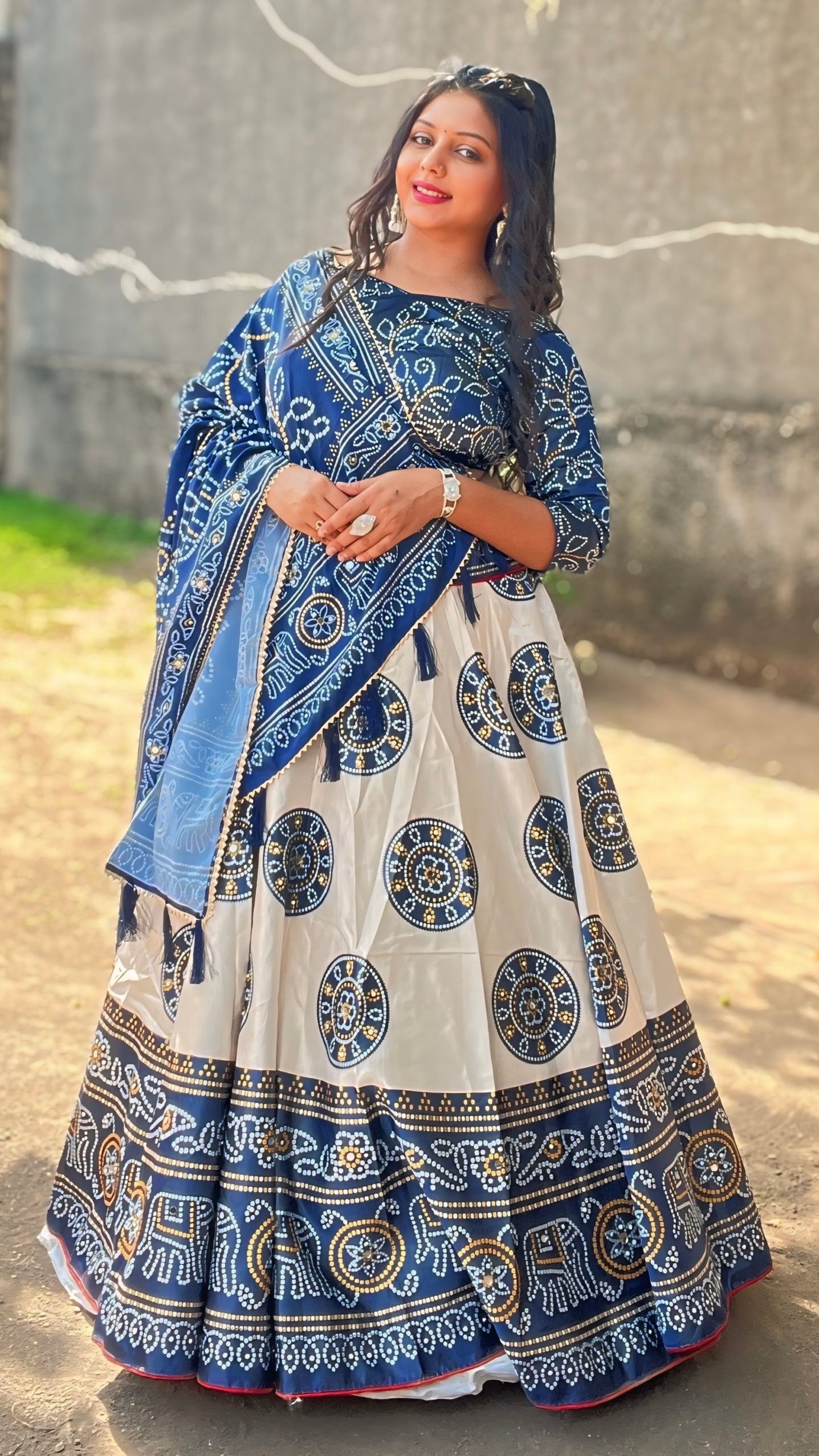 7 Mt. Flair Bandhej Lehanga Choli with Mirror Work (Blue)