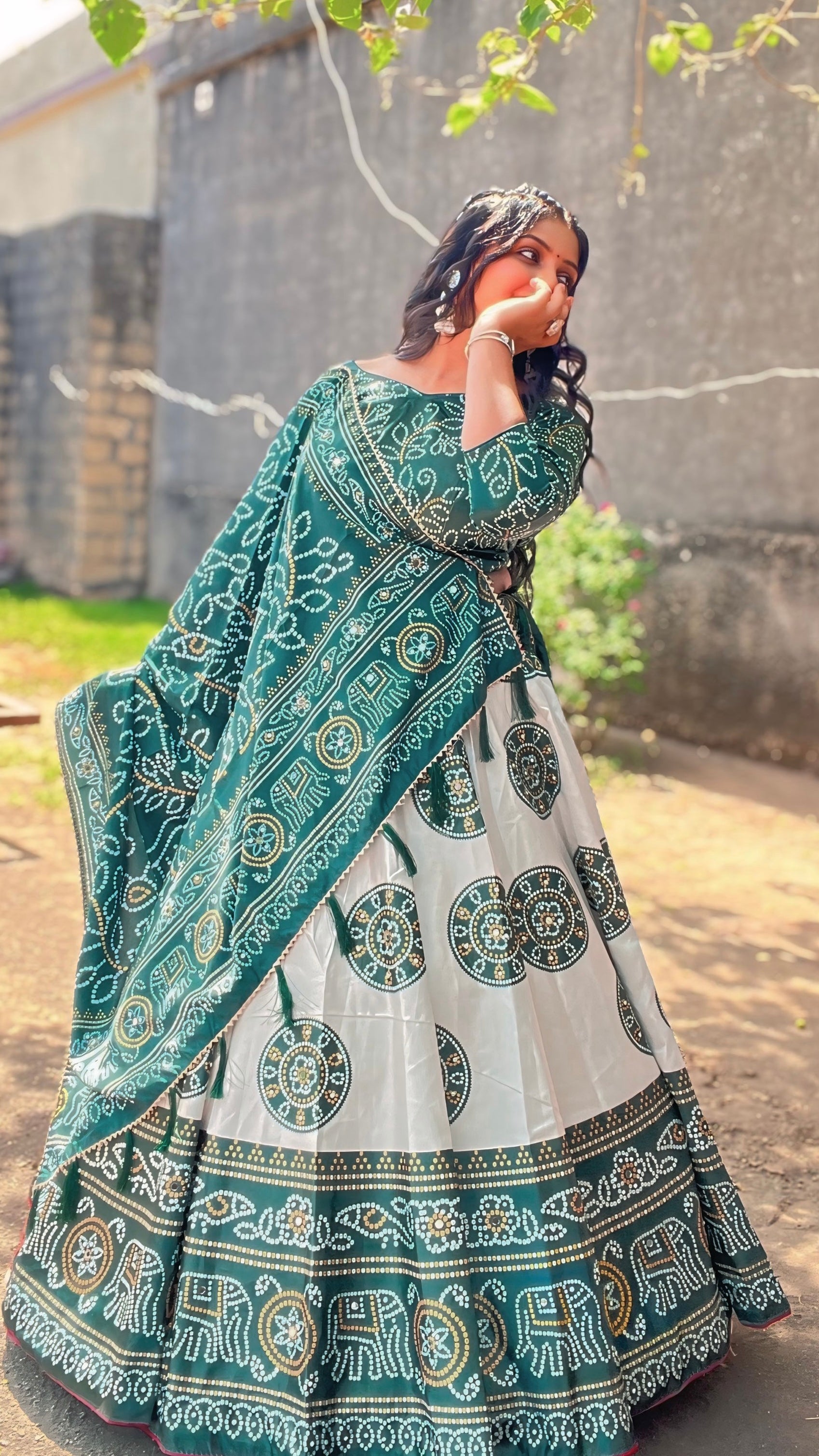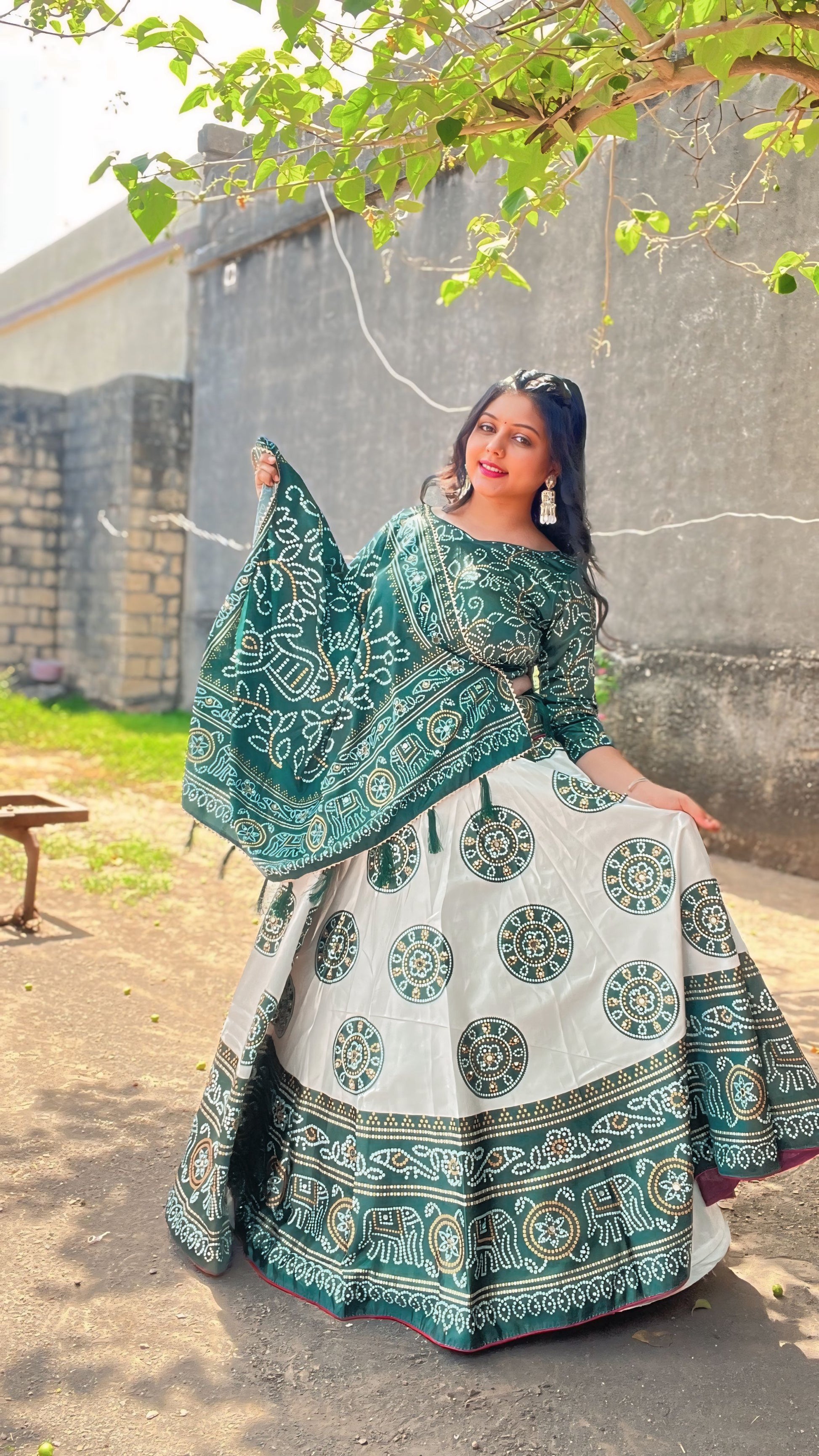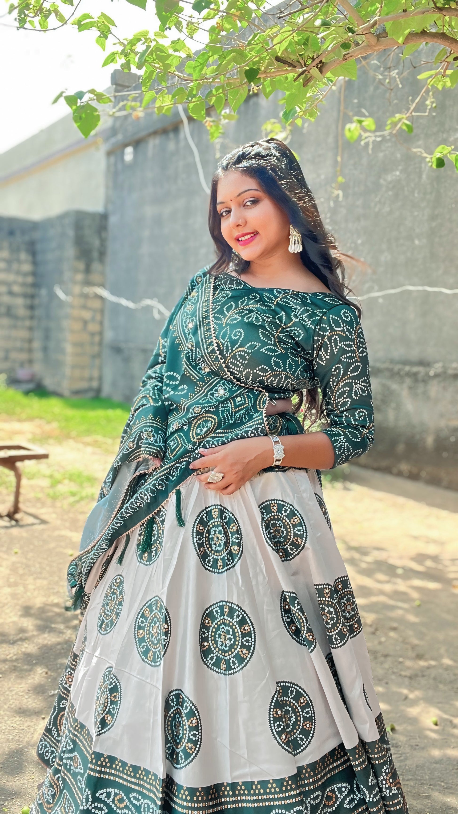7 Mt. Flair Bandhej Lehanga Choli with Mirror Work (Green)