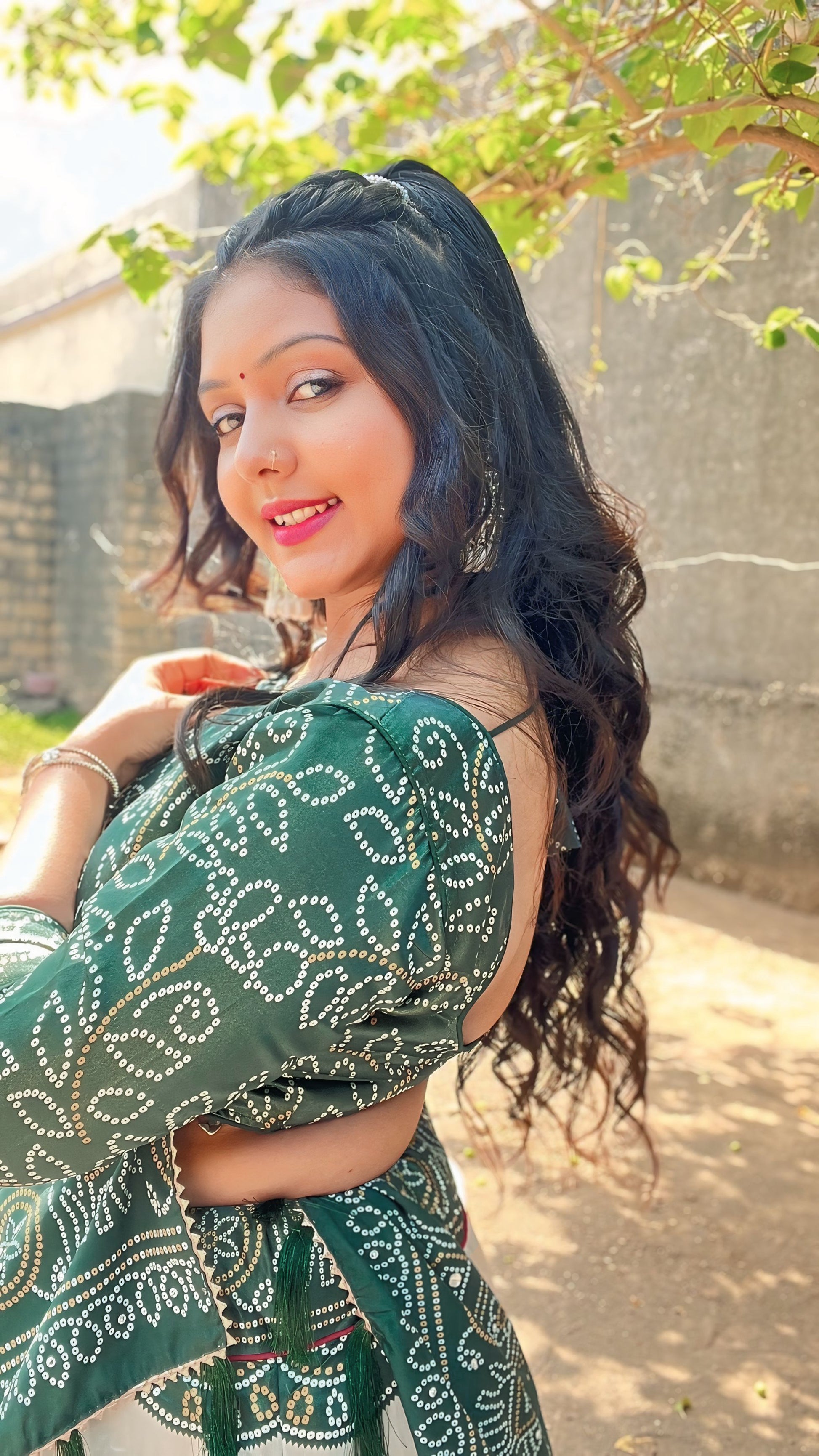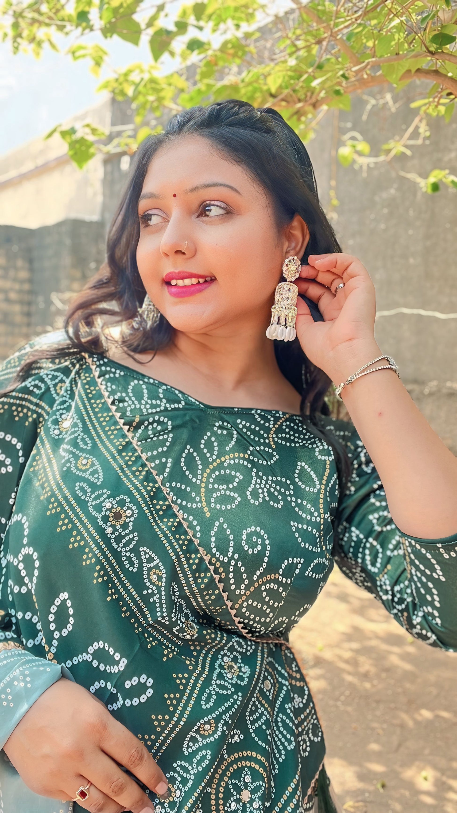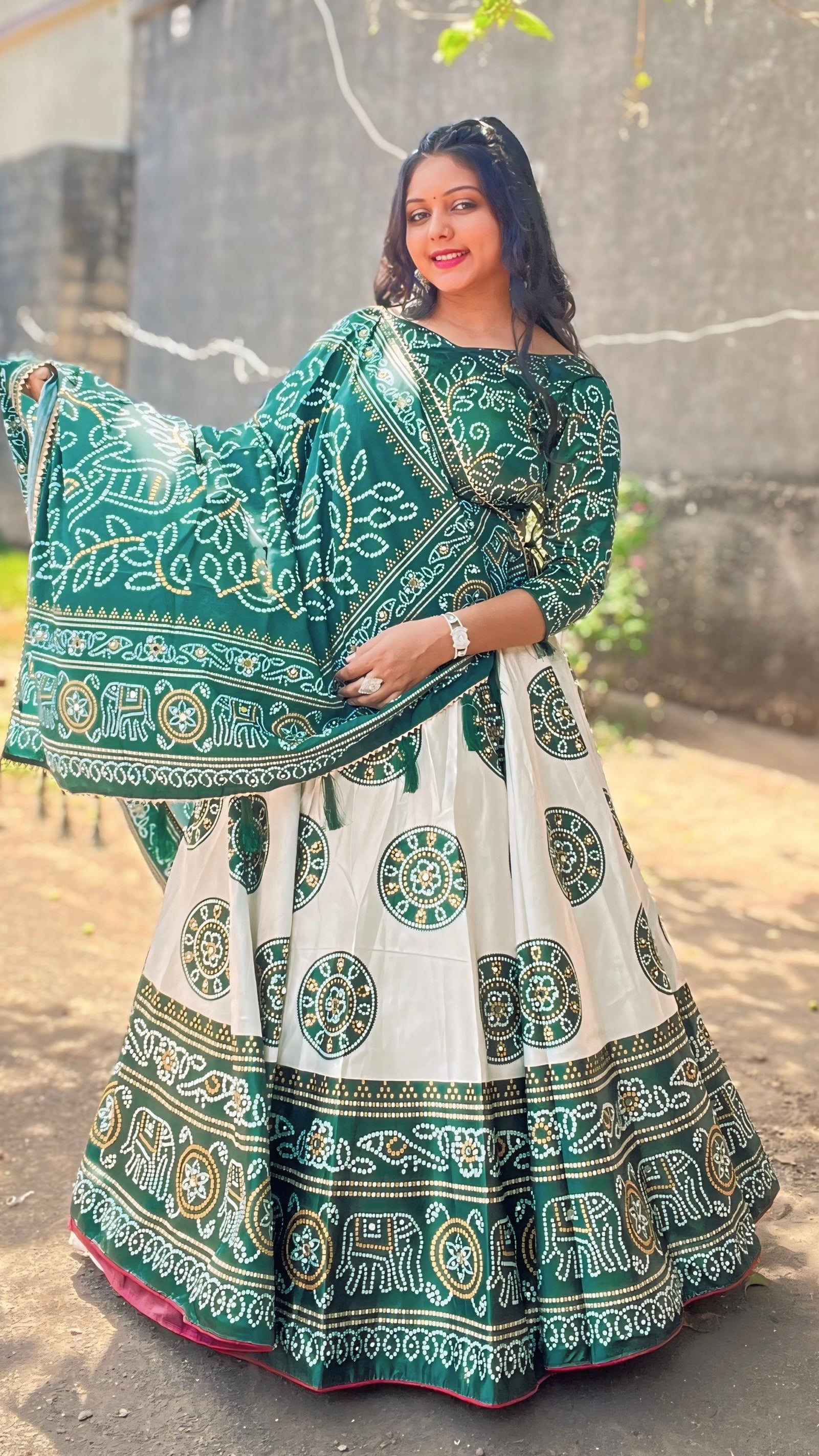 7 Mt. Flair Bandhej Lehanga Choli with Mirror Work (Green)