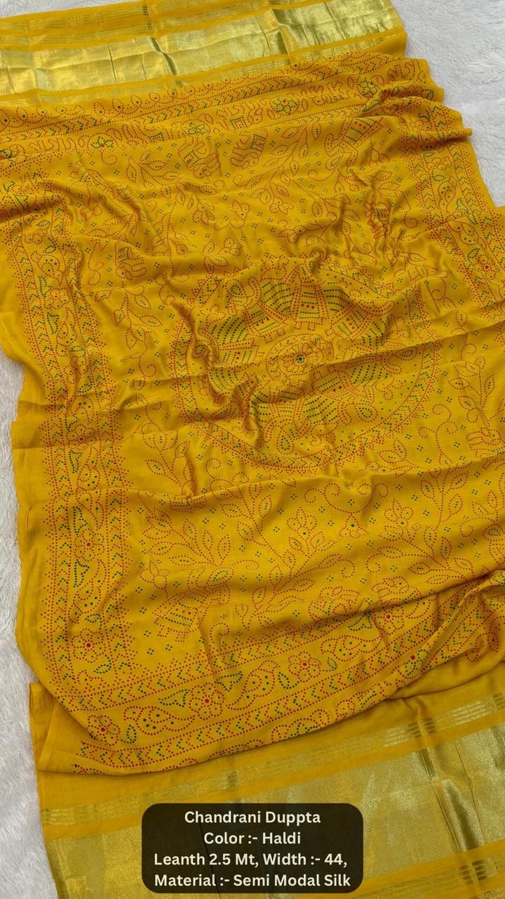 Material: Made from premium semi-modal silk, this dupatta offers a luxurious feel while ensuring lightweight comfort. The semi-modal silk fabric drapes beautifully, creating an elegant silhouette.