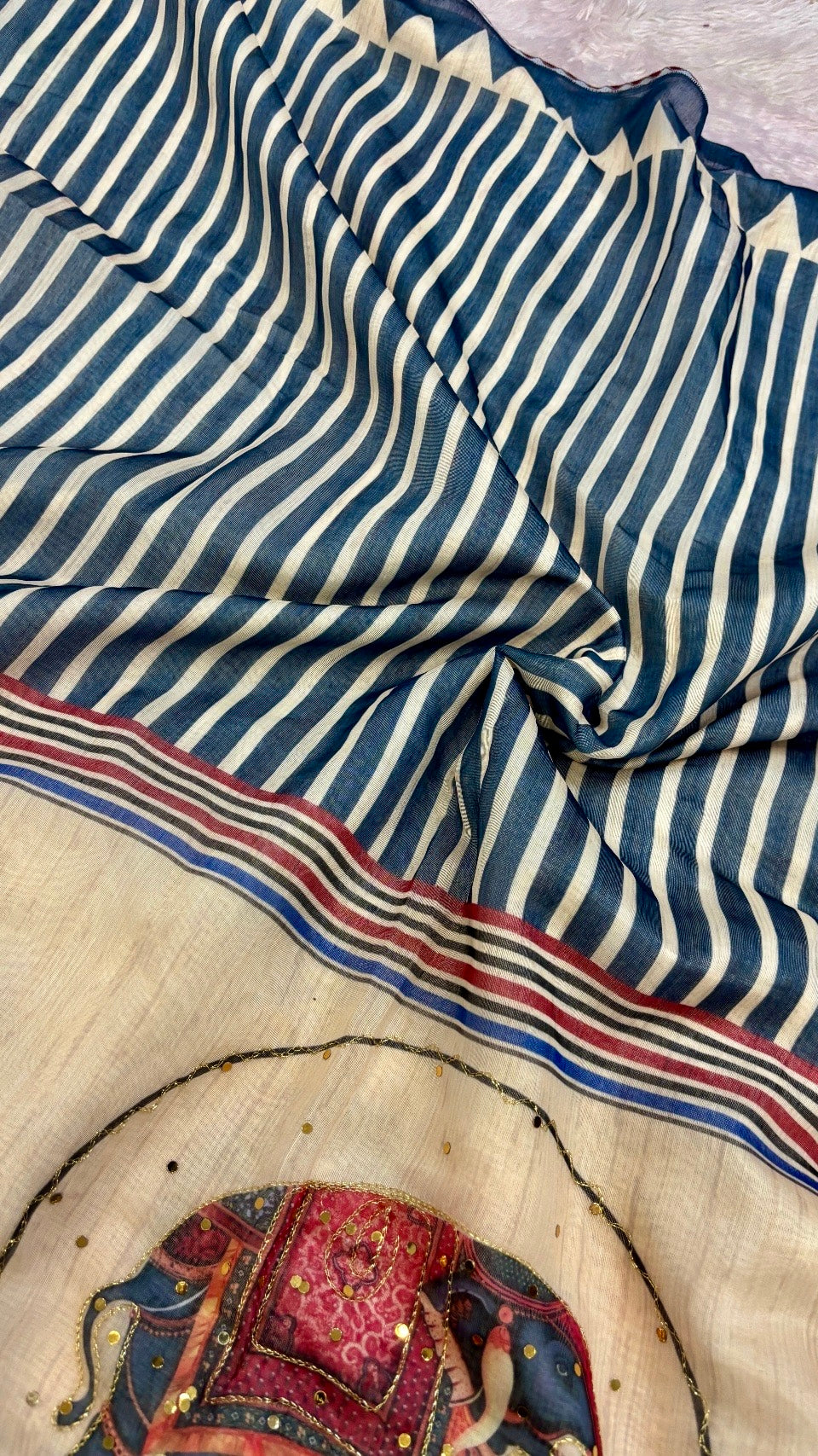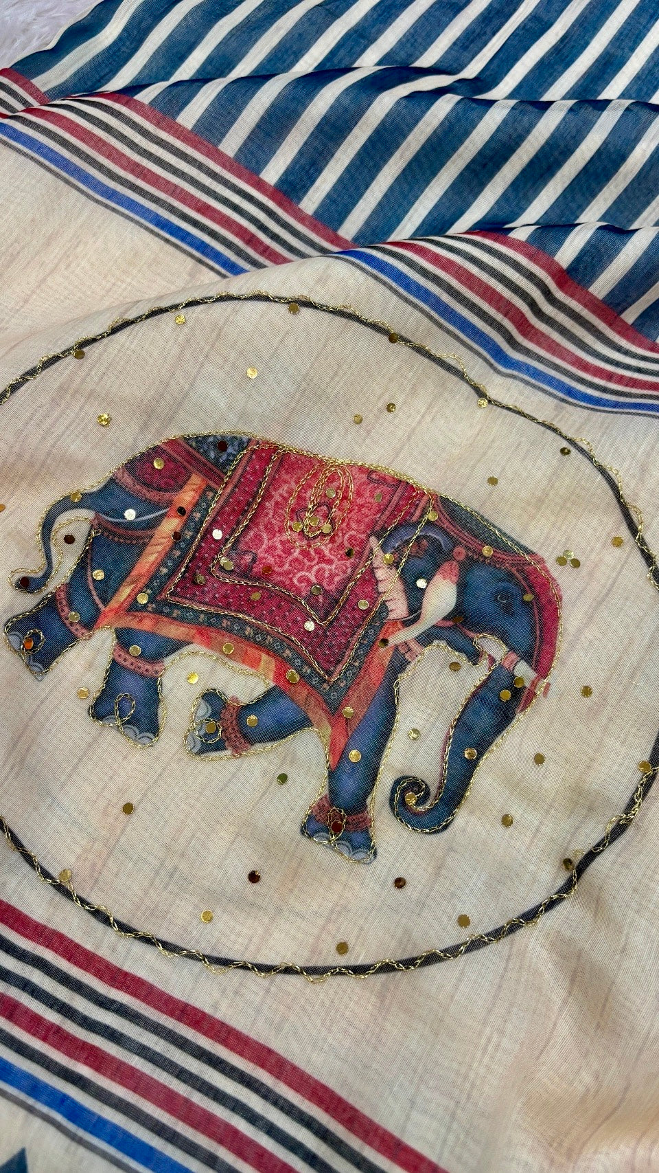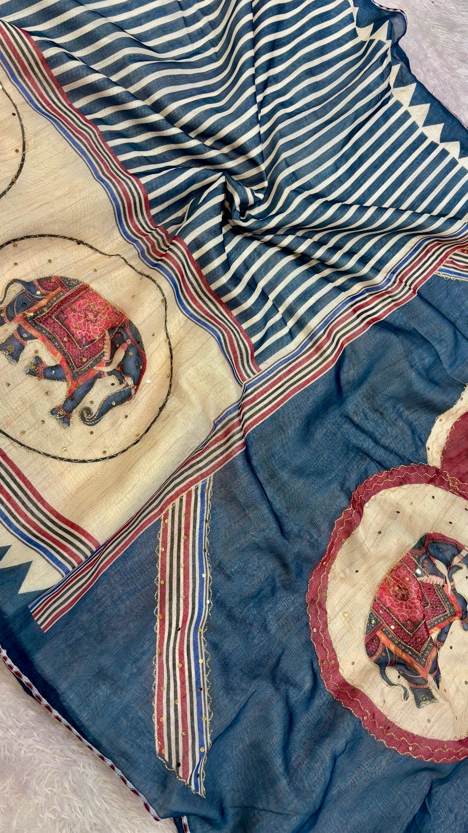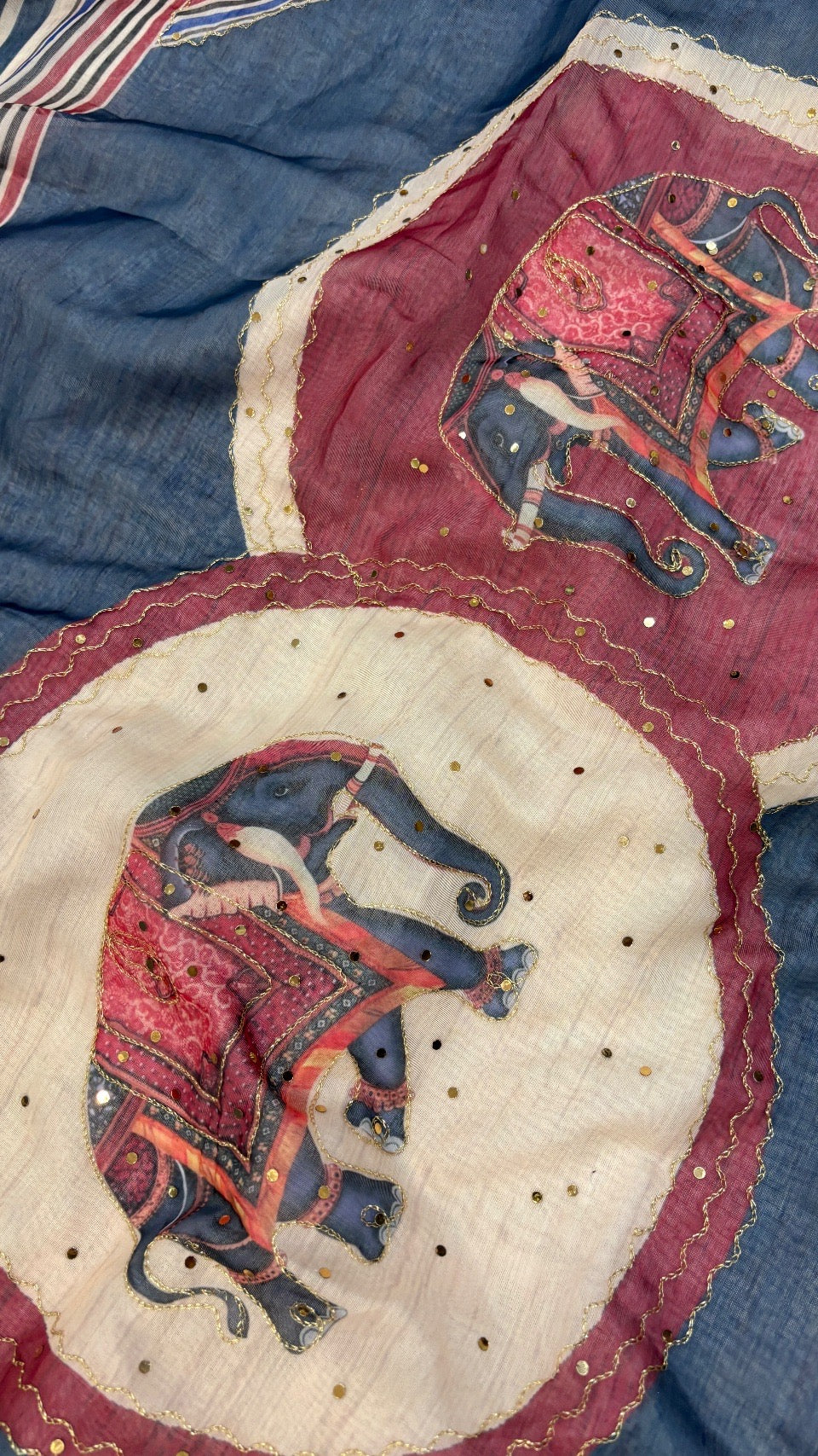 Digital Handpicked, Sequence Work Saree (Airawat Blue)