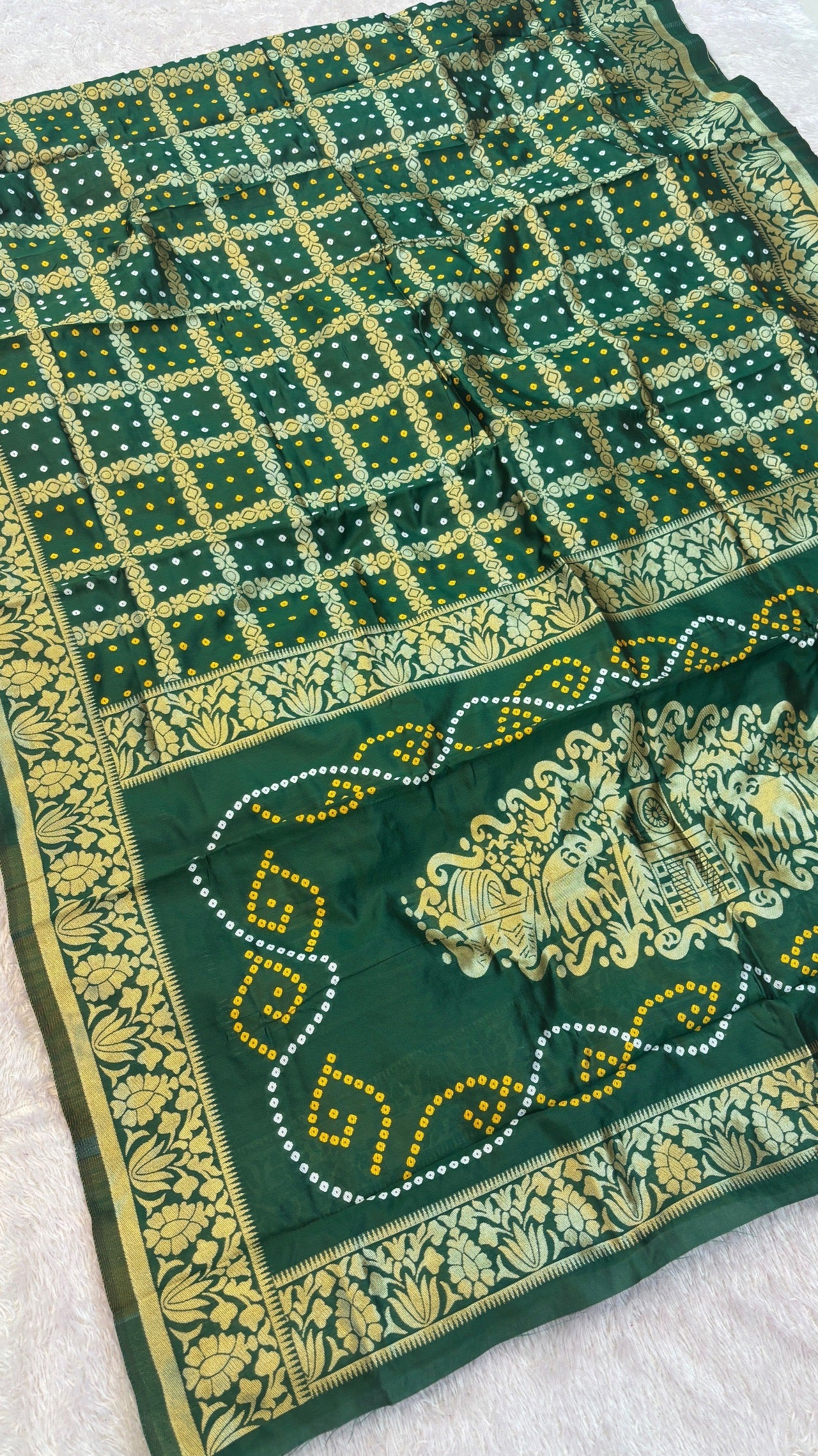 Step into Grandeur - Order Your Banarasi Bandhani Soft Silk Saree Now!