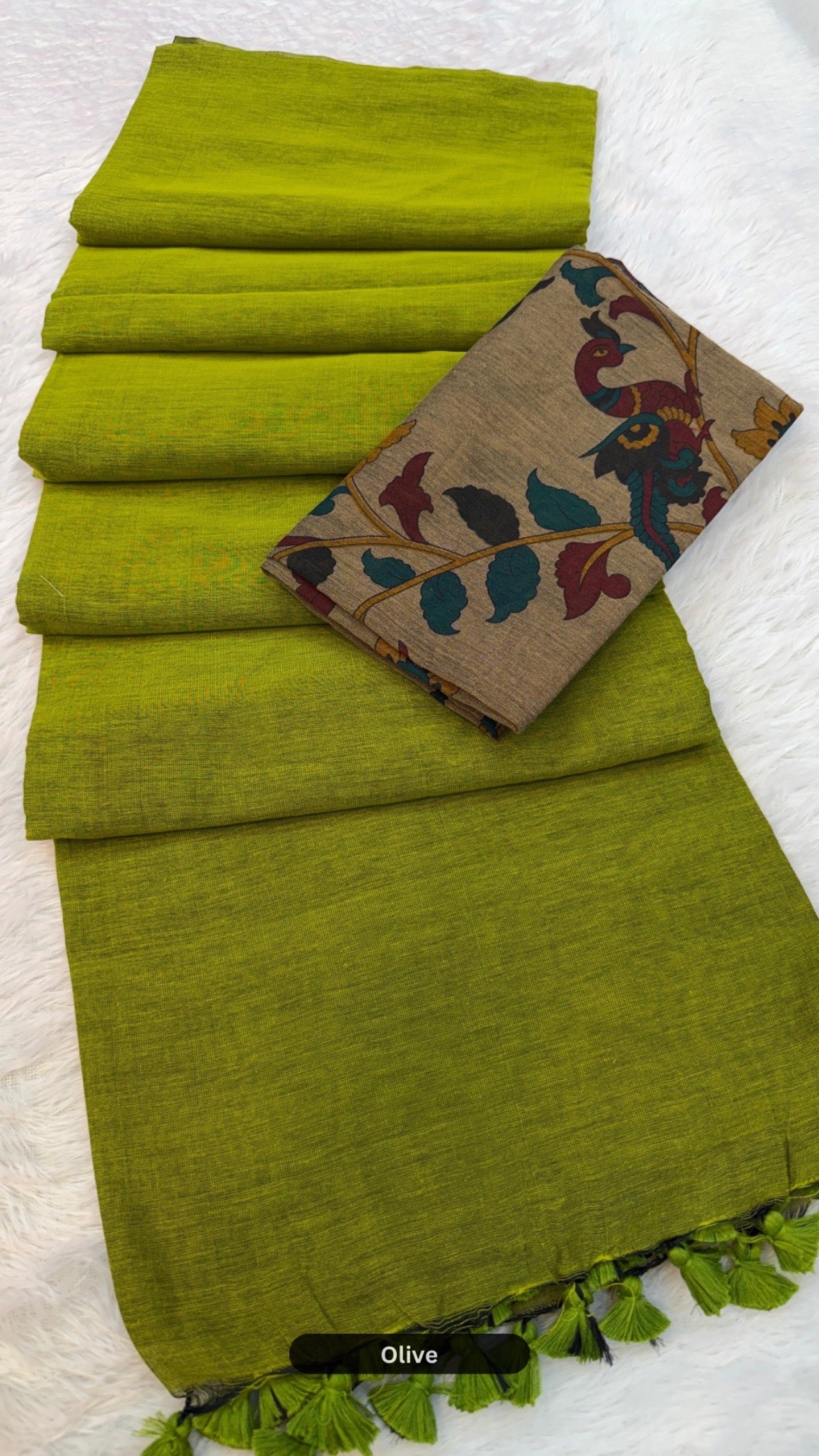 "Experience the fusion of tradition and contemporary flair with our Plain Saree paired with a stunning Kalamkari blouse. Secure this elegant ensemble now for just ₹950 with free shipping. Elevate your wardrobe with sophistication and style."