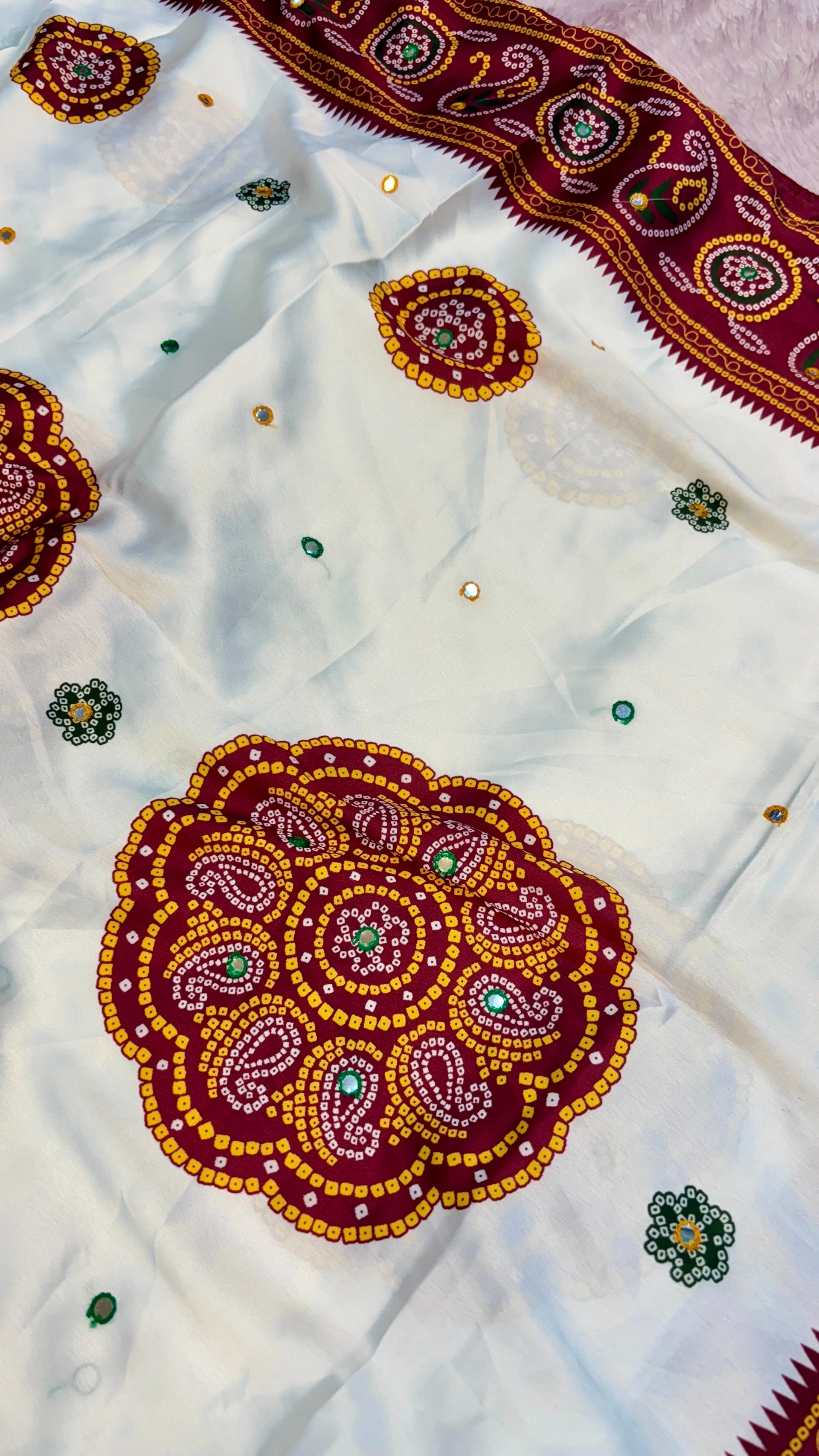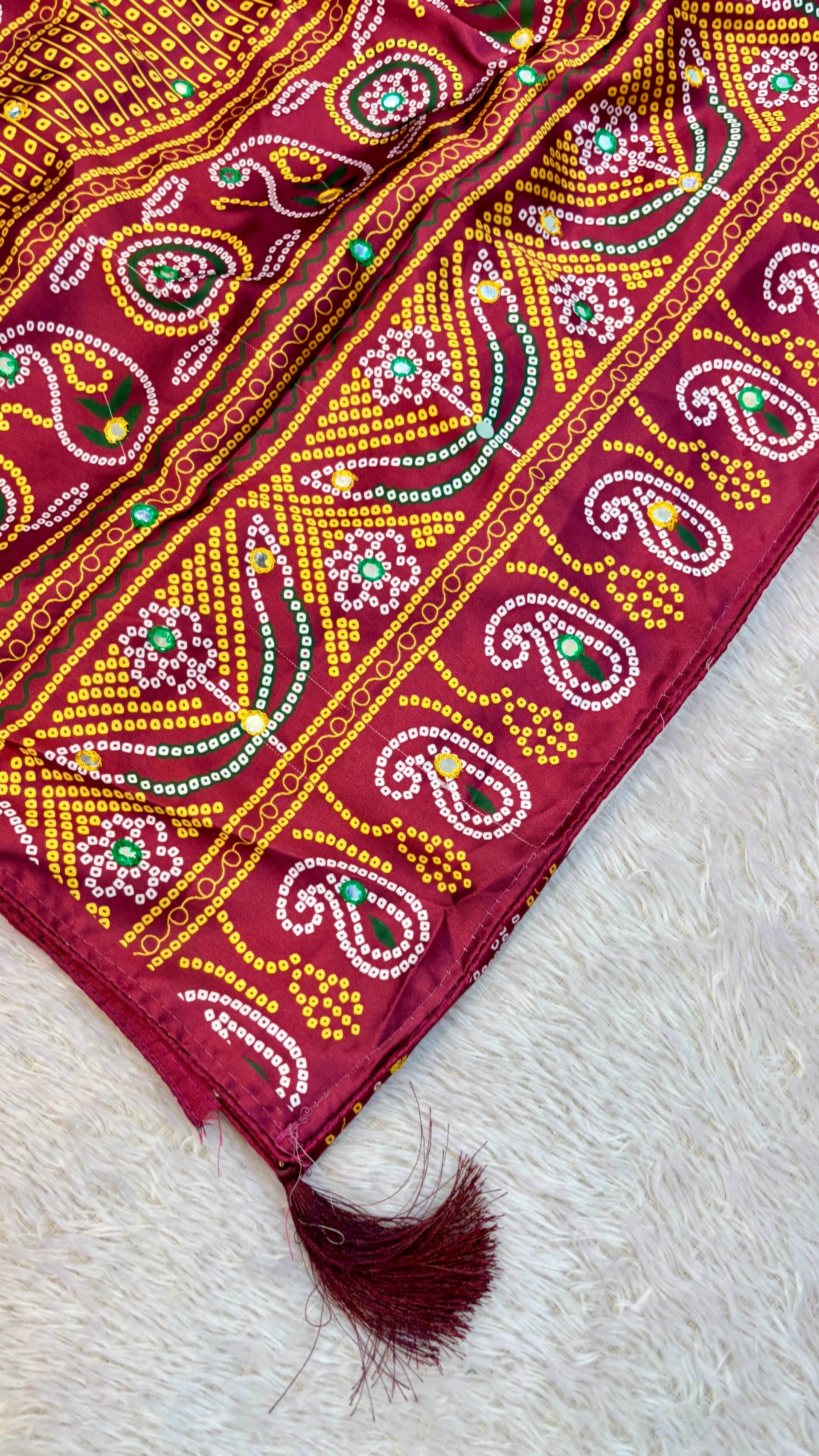 • Features the classic Bandhani design, renowned for its intricate grid patterns and traditional charm.