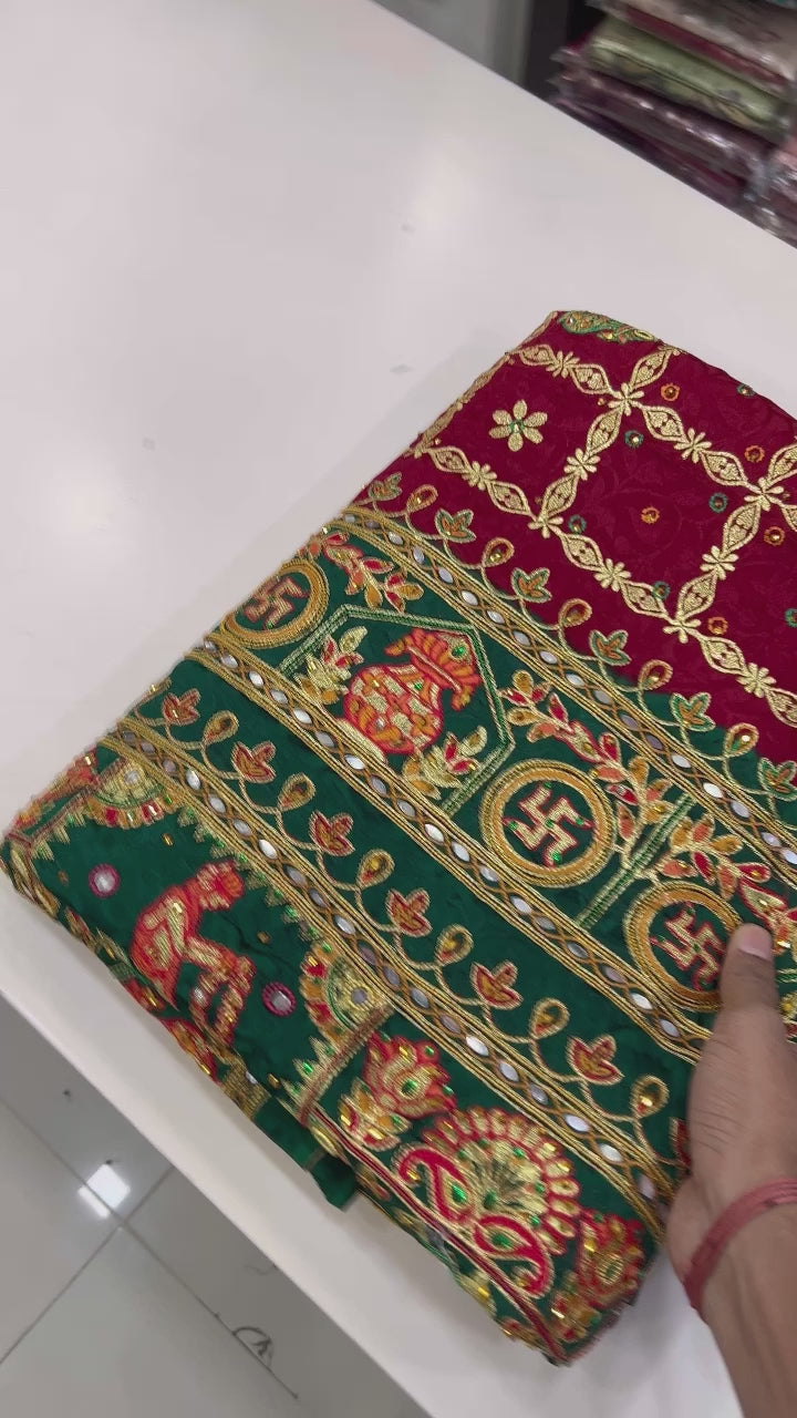 - Intricate Embroidery Work: Adorned with detailed embroidery, each piece reflects the artistry and precision of Kutchi Gharchola design.