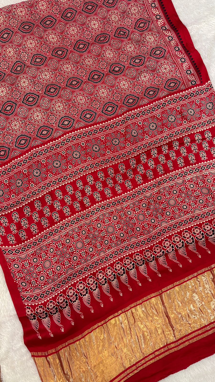 Pure Modal Silk Ajrakh Saree with Lagadi Patta