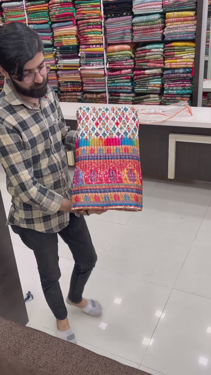 Explore the enchanting allure of our Multi White Style Lehanga Choli – a versatile and eye-catching ensemble perfect for various celebrations.